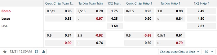 Tip kèo Châu Á full trận Como vs Lecce