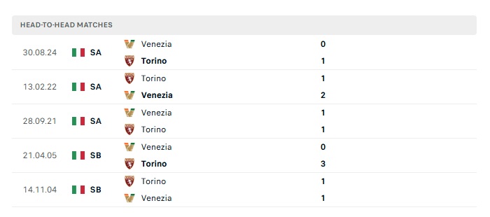 Lịch sử đối đầu Torino vs Venezia