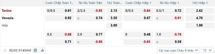 Soi kèo châu Á, kèo Torino vs Venezia