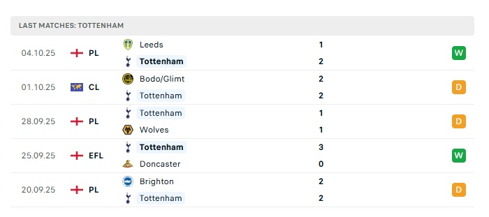 - Phong độ gần đây Tottenham