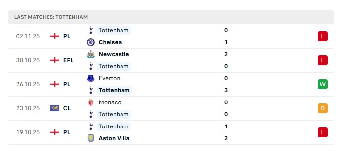 - Phong độ gần đây Tottenham