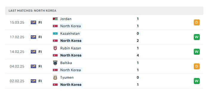 • Phong độ gần đây Triều Tiên