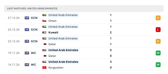 • Phong độ gần đây UAE