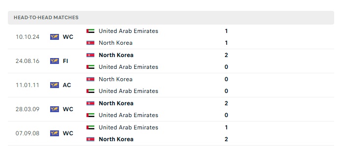 Phong độ gần đây Triều Tiên vs UAE