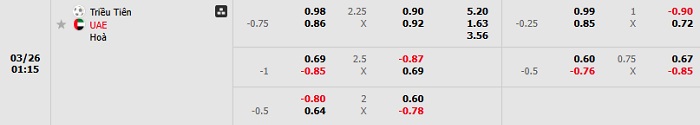 Bảng tỷ lệ kèo bóng đá Triều Tiên vs UAE