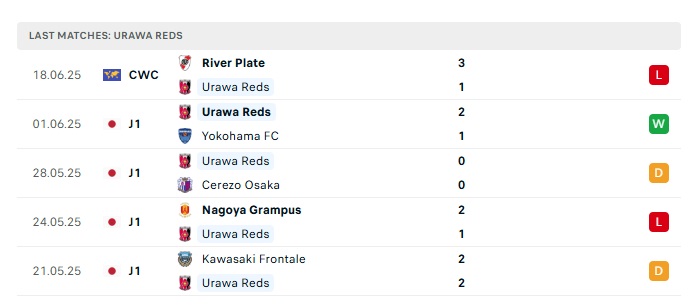 - Phong độ gần đây Urawa Red