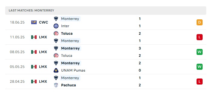 - Phong độ gần đây Monterrey