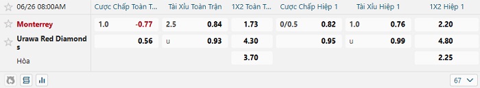 - Kèo tỷ số H1 Urawa Red vs Monterrey: 0-1