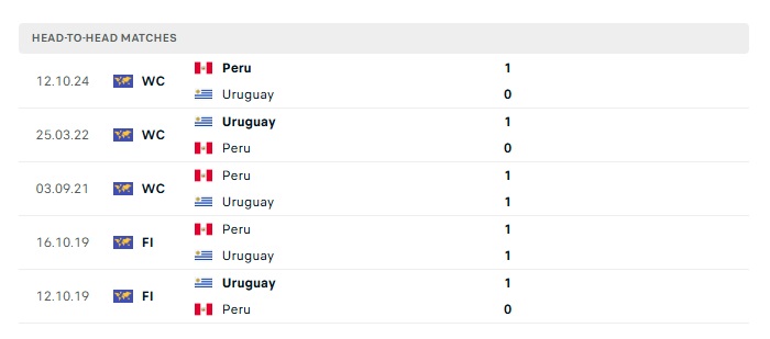 Tuy áp đảo đối thủ về sức mạnh là vậy nhưng Uruguay lúc này đang có phong độ không quá tốt. Theo ghi nhận trong 5 trận đấu gần nhất, Uruguay đã có 1 thắng, 2 hòa và còn lại là 2 trận thua. Trong khi đó thì Peru cũng đang chỉ thắng 1, hòa 2 và thua 2 trong 5 trận đấu gần nhất của mình. Như vậy, các chuyên gia hoàn toàn có cơ sở để dự đoán Uruguay hôm nay sẽ có chiến thắng tại sân nhà.