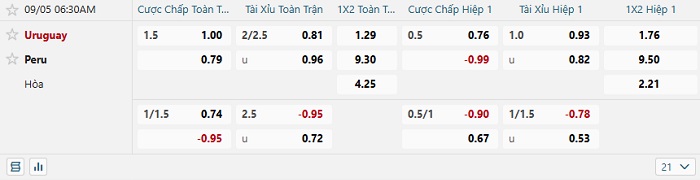 Soi kèo châu Á, kèo Uruguay vs Peru