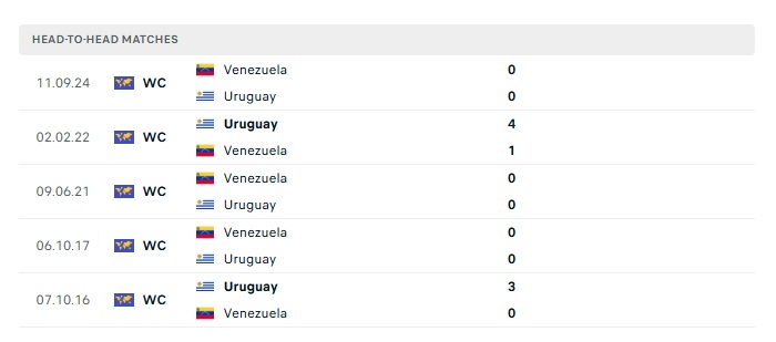 Lịch sử đối đầu Uruguay vs Venezuela