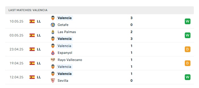 Phong độ gần đây Valencia  vs Athletic Bilbao
