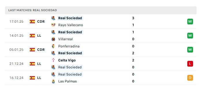 • Phong độ gần đây Real Sociedad