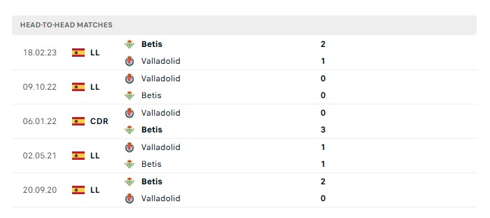 Lịch sử đối đầu Valladolid vs Real Betis