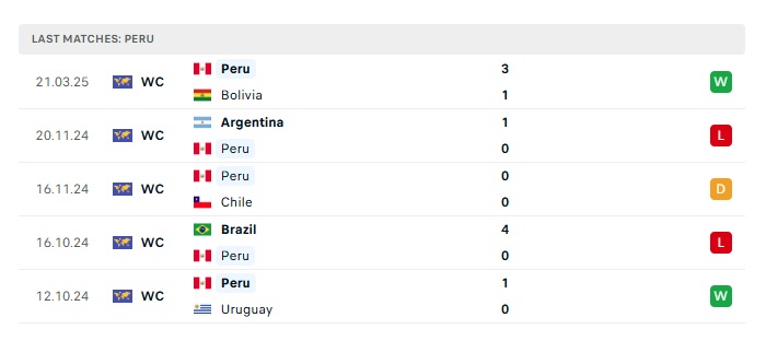 Tuy xét về vị trí thì Peru đang đứng áp chót BXH nhưng về chuyên môn, họ vẫn còn đó cơ hội giành vé đi tiếp. Hiện tại, Peru đang đứng áp chót trên BXH cùng 10 điểm sau 13 vòng đấu đã qua. Trong khi đó thì Venezuela lúc này đang có mặt ở vị trí thứ 8 trên BXH với 12 điểm. Trước mặt họ, Bolivia đứng trong nhóm dự Playoff chỉ đang có 13 điểm nên cả hai đều có cửa đi tiếp khi giành chiến thắng ít nhất ở 2 vòng tiếp theo.