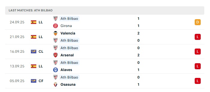 • Phong độ gần đây Athletic Bilbao