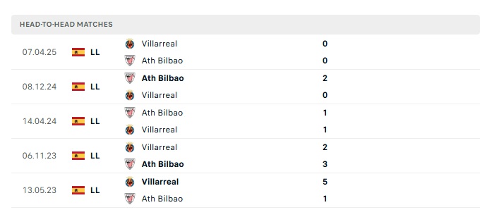 Lịch sử đối đầu Villarreal vs Athletic Bilbao