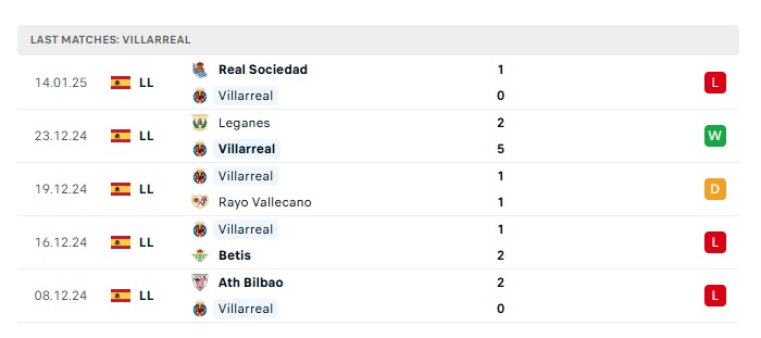 - Phong độ gần đây Villarreal