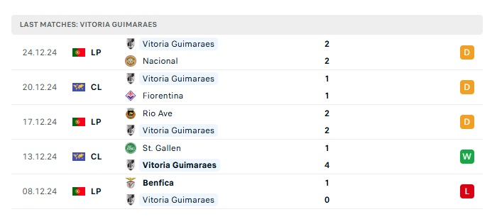 - Phong độ gần đây Vitoria Guimaraes