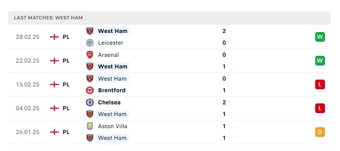 • Phong độ gần đây West Ham Utd