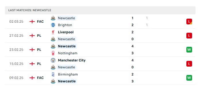 • Phong độ gần đây  Newcastle