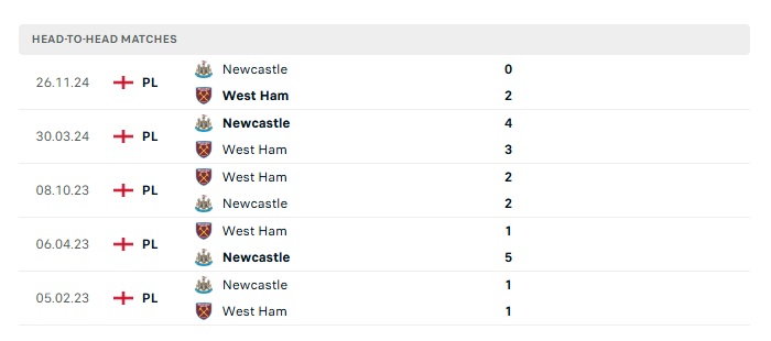 Lịch sử đối đầu West Ham Utd vs Newcastle