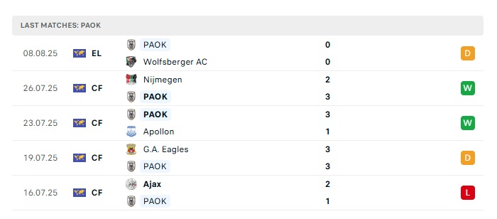 - Phong độ gần đây PAOK
