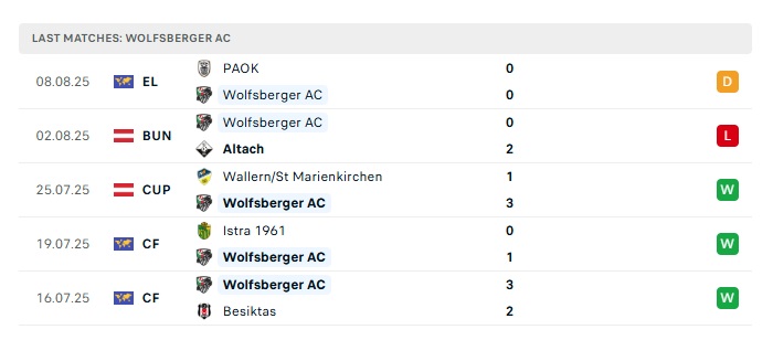 - Phong độ gần đây Wolfsberger AC