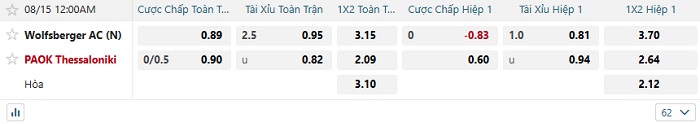 Như đã đề cập thì dù chơi rất hay ở lượt đi nhưng Wolfsberger vẫn còn thua kém đối thủ ở nhiều mặt. Trong 7 trận gần nhất của Wolfsberger, họ được ghi nhận chỉ có đúng 3 trận thắng, còn lại là 2 hòa và 2 thua. Trong khi đó thì PAOK ở 2 trận sân khách gần nhất, họ đã bất bại với 1 thắng và 1 hòa. Vậy nên kèo châu Âu trận đấu hôm nay sẽ có đội khách là lựa chọn đầu tư an toàn nhất trong cả 2 hiệp.