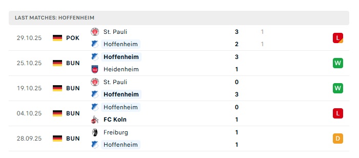 Phong độ gần đây Wolfsburg vs Hoffenheim