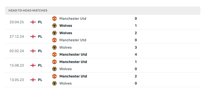 Lịch sử đối đầu Wolves vs Manchester Utd